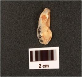 | Description / विवरण | Chalcedony scraper, convex and broad working edge with use-wear marks on it, prominent bulb with striking platform, cortex visible on surface. |
