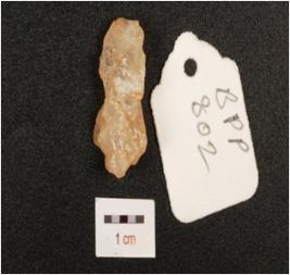 | Description / विवरण | Flake made on quartz. Prepared platform, use wear mark along cutting edges. |