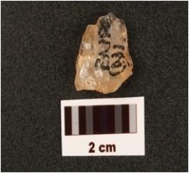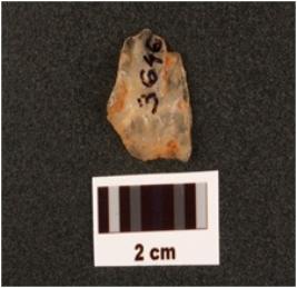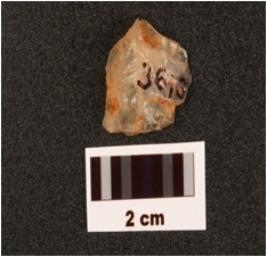 | Description / विवरण | Fragment of quartz core, blade scars visible on surface. |