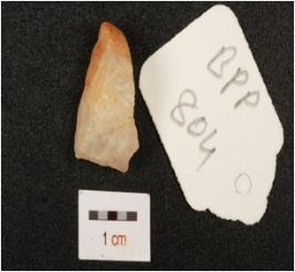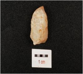 | Description / विवरण | Flake made on quartz. Prepared platform. Use wear mark along cutting edges. Diffused bulb on ventral side. |