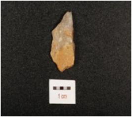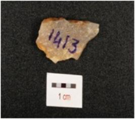 | Description / विवरण | A quartz flake with smooth surface, use wear marks on edge and partly craks is visible. |