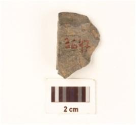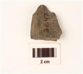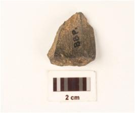 | Description / विवरण | An utiliged flake made on basalt five flak scar present on the surface, prepared platform on proximal end, diffused bulb on the ventral side, distal end pointed. |