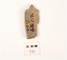 | Description / विवरण | A flake made on chert, flake scars on dorsal side, rectangular section, bulb and platform difused, use wear marks. |