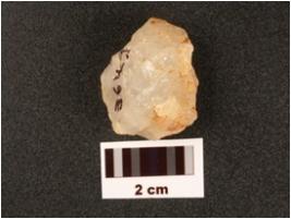 | Description / विवरण | Core made on with quartz, prepared platform on the proximal end, bulb of percussion on the proximal end with no of blade scars. |