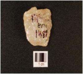 | Description / विवरण | A quartz side scraper on end struck flake with flake scars on dorsal, use-wear marks on working edge. |