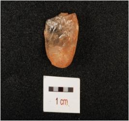 | Description / विवरण | A scraper made on quartz. Prepared platform on proximal end, use wear mark along cutting edges. Mid ridge on dorsal side. |