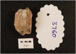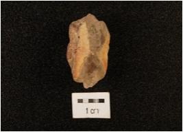 | Description / विवरण | Flake made on with crystal with no. of flake scars present on the surface, prepared platform on proximal end. Bulb of percussion present on the ventral side, digtal end pointed irregular retouch. |