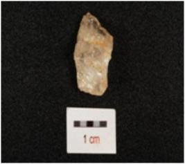 | Description / विवरण | A quartz scraper with smooth surface, flake scars and use wear marks on working edge. |