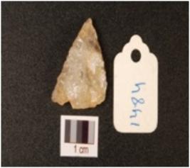 | Description / विवरण | A quartz side scraper on side struck flake with flake scars on dorsal, use-wear marks on working edge and prepared platform. |