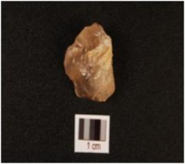 | Description / विवरण | A quartz scraper with flake scars on surface, prepared platform and use wear marks on working edge. |