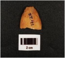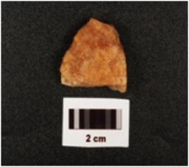 | Description / विवरण | a quartz scraper with cortex on smooth surface, striking platform, chipped off bulb and use wear marks on working edge. |