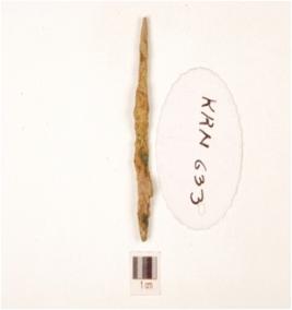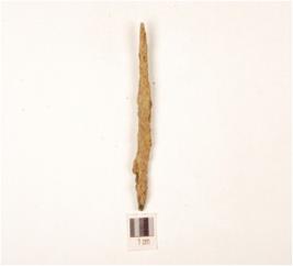 | Description / विवरण | A copper nail uneven shaped, rough surface, pointed one end and corroded. |