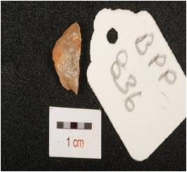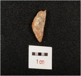 | Description / विवरण | Debitage made on quartz. One side plain and other side uneven surface, use wear mark along cutting edges. |