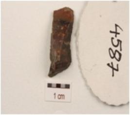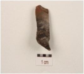| Description / विवरण | Flake made on chert with ridge on dorsal side and diffused bulb on ventral side, smooth surface, use-wear marks along cutting edge. |