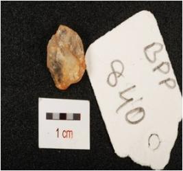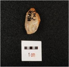 | Description / विवरण | A small debitage made on quartz, plain ventral side, use wear mark along cutting edges. Uneven dorsal surface. |