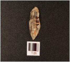 | Description / विवरण | A rock crystal scraper with use wear marks on working edge, smooth surface and flake scars on dorsal side. |