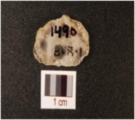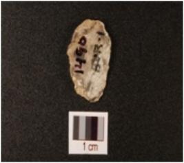 | Description / विवरण | A rock crystal scraper with smooth surface, use wear marks on working edge and flake scars on dorsal side. |