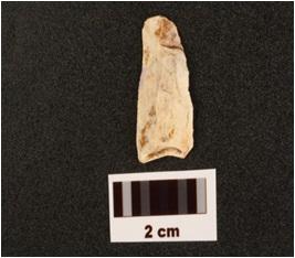 | Description / विवरण | A blade made on chert with a mid ridge on dorsal surface, smooth surface, diffused bulb. |