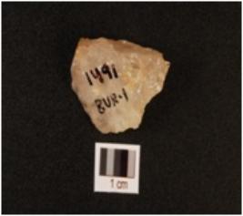 | Description / विवरण | A quartz side scraper on side struck flake with flake scars on dorsal and use wear marks on working edge, prepared platform. |