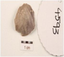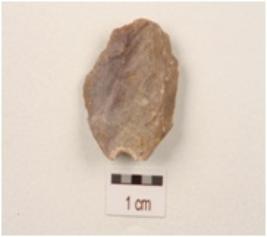 | Description / विवरण | Flake made on chert, prepared platform, prominent bulb on ventral side, use-wear marks along cutting edge. |
