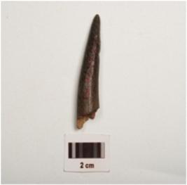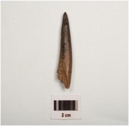 | Description / विवरण | A horn core, polished surface with a pointed end, partly broken at other end, hollow from within and dark brown in colour. |
