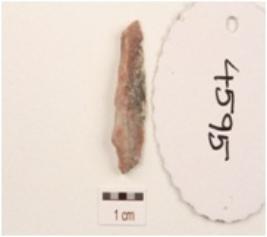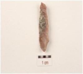 | Description / विवरण | Flake made on chert with chipped off dorsal side, and diffused bulb on ventral side, use-wear marks on cutting edges, triangular in section. |