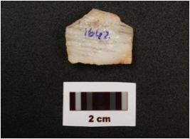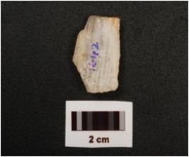 | Description / विवरण | A quartz side scraper on end with flake scars on dorsal, prepared platform, diffused bulb on ventral and use wear marks on working edge. |