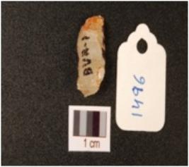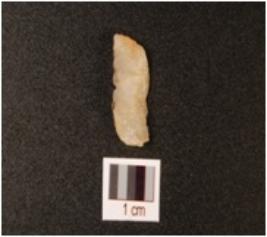 | Description / विवरण | A quartz side scraper with use wear marks on working edge, flake scars on dorsal and smooth surface. |