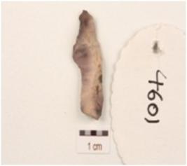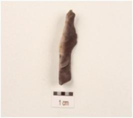 | Description / विवरण | Flake made on chert with ridge on dorsal side and diffused bulb on ventral side, triangular in section. |