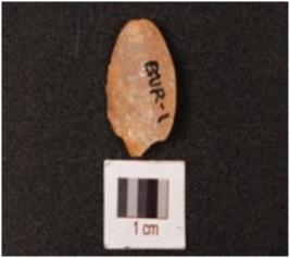 | Description / विवरण | A quartz scraper, mid ridge on dorsal, ventral is smooth and use wear marks on edge. |