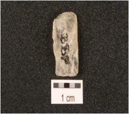 | Description / विवरण | A blade made on quartz with smooth surface, used wear marks on edge. |