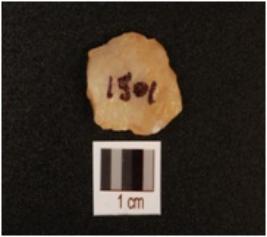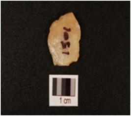 | Description / विवरण | A quartz scraper with use wear mark on working edge and bulb on ventral. |