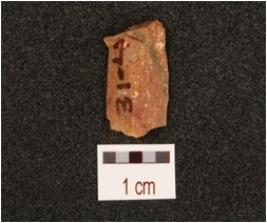 | Description / विवरण | A blade fragment made on chert with smooth surface, mid ridge on surface. |