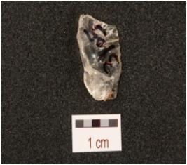 | Description / विवरण | A blade made on quartz with smooth surface, used wear marks on working edge, prominent bulb on dorsal surface. |
