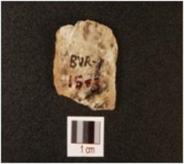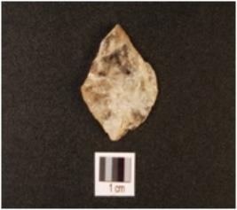 | Description / विवरण | A quartz scraper with use wear marks on working edge, prepared platform and flake scars on dorsal side. |