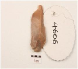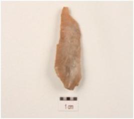 | Description / विवरण | Flake made on chert with striking platform, ridge on dorsal side and promient bulb on ventral side, use-wear marks along cutting edges. |