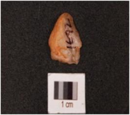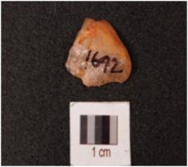 | Description / विवरण | A flake made of quartz with flake scars on surface. |