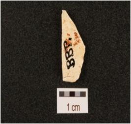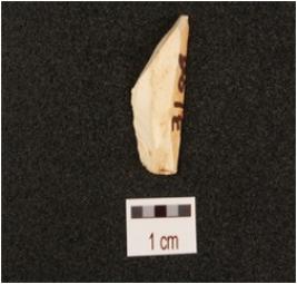 | Description / विवरण | A blade made on chert with smooth surface, used wear marks on working edge, three flake scars on dorsal surface. |