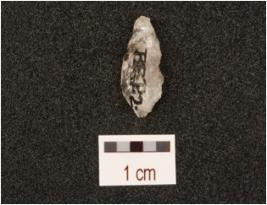 | Description / विवरण | A blade made on quartz with smooth surface, used wear marks on working edges, ridge on dorsal surface. |