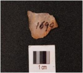 | Description / विवरण | A quartz flake with flake scars on the surface, surface is uneven and translucent. |