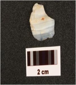 | Description / विवरण | A flake made on chalcedony with smooth surface, used wear marks along edges. |