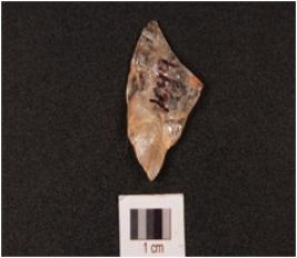 | Description / विवरण | A side scraper mid ridge on dorsal ventral is rough with diffuse bulb and use wear marks on edge. |
