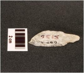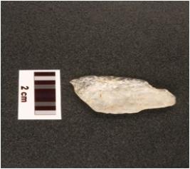 | Description / विवरण | A tanged blade made on quartz with smooth surface, used wear marks along edges. |