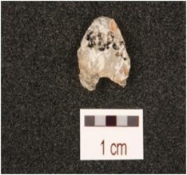 | Description / विवरण | A scraper made on quartz with smooth surface, used wear marks on cutting edges, prepared platform, prominent bulb on ventral side. |