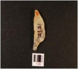| Description / विवरण | A quartz scraper with use wear marks on working edge and flake scars on dorsal. |
