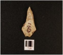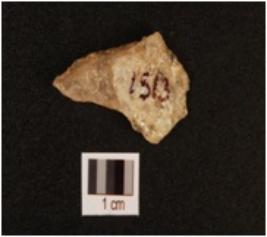 | Description / विवरण | A quartz scraper with smooth surface, use wear marks on working edge and bulb on ventral. |