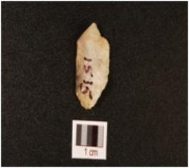 | Description / विवरण | A quartz scraper with smooth surface, use wear marks on working edge and flake scars on dorsal. |