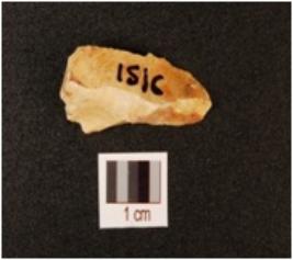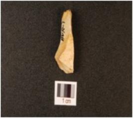 | Description / विवरण | A chert blade with prominent single ridge on dorsal and diffused bulb on ventral. |