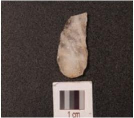 | Description / विवरण | Point made on quartz, four flake scars and distal end broken. |