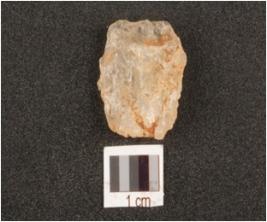 | Description / विवरण | Quartz, waste flake, bulb at precussion on dorsal side, rugged surface. |
